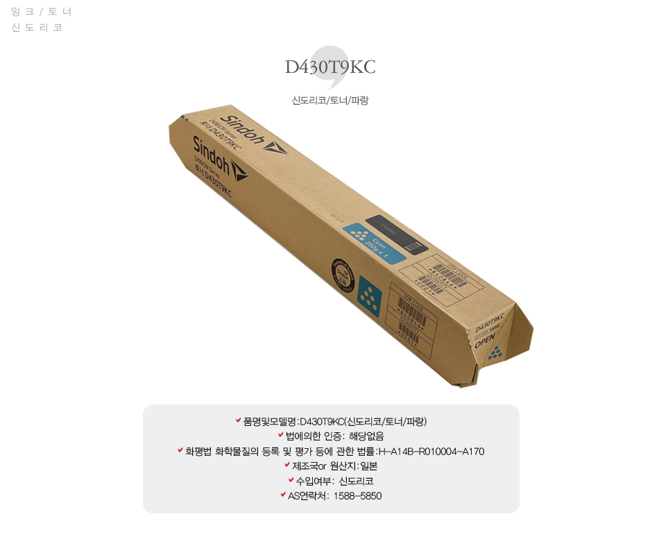 [업체별도배송]D430T9KC(신도리코/토너/파랑)/개