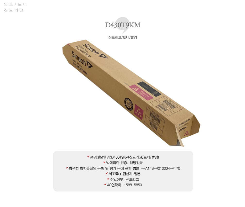 [업체별도배송]D430T9KM(신도리코/토너/빨강)/개