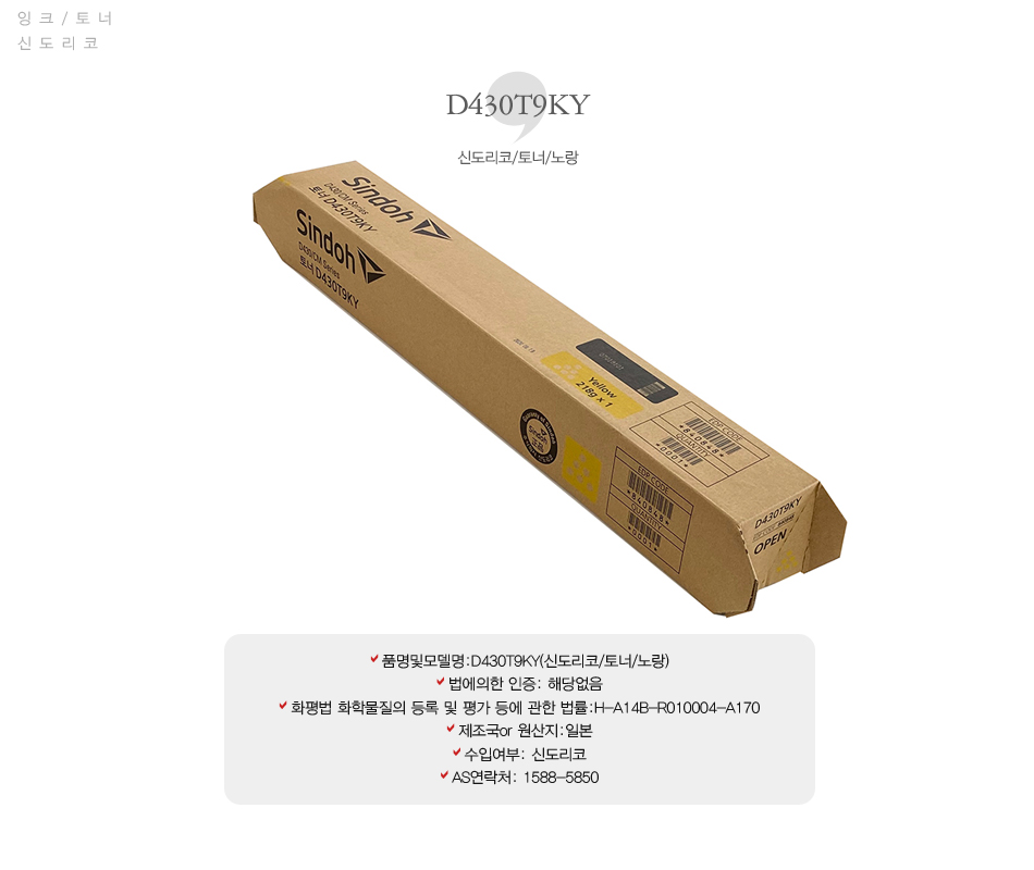 [업체별도배송]D430T9KY(신도리코/토너/노랑)/개