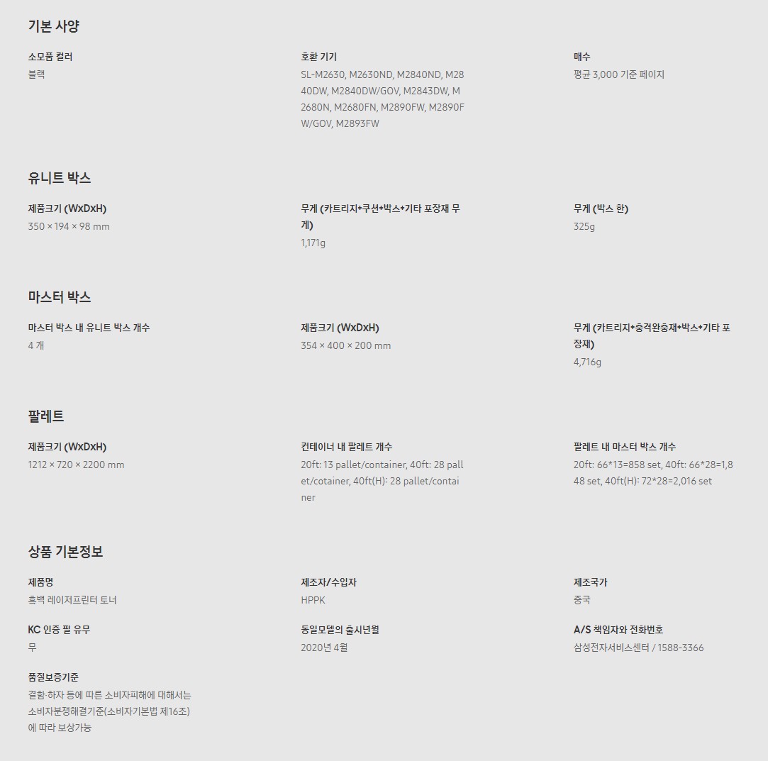 ■ 품명및모델명: MLT-K250L(삼성/토너/검정)