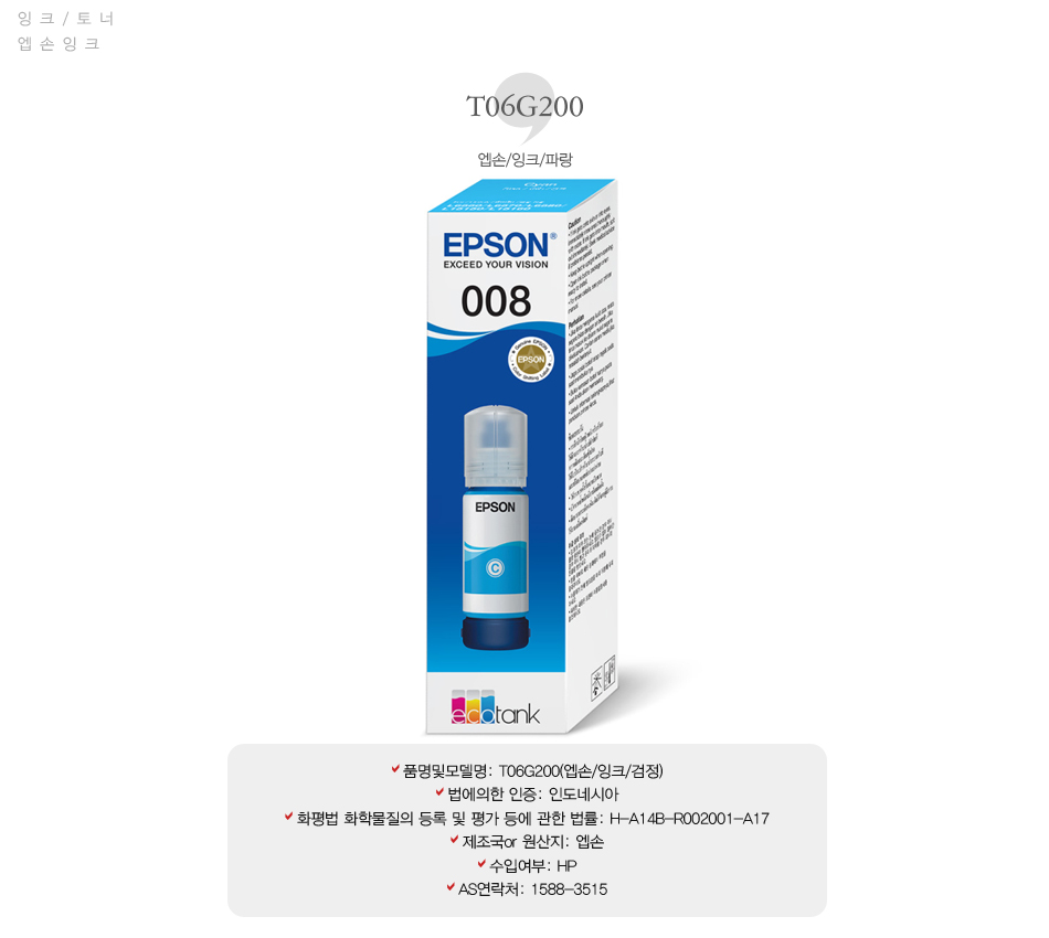 [업체별도배송]T06G200(엡손/잉크/파랑)/개