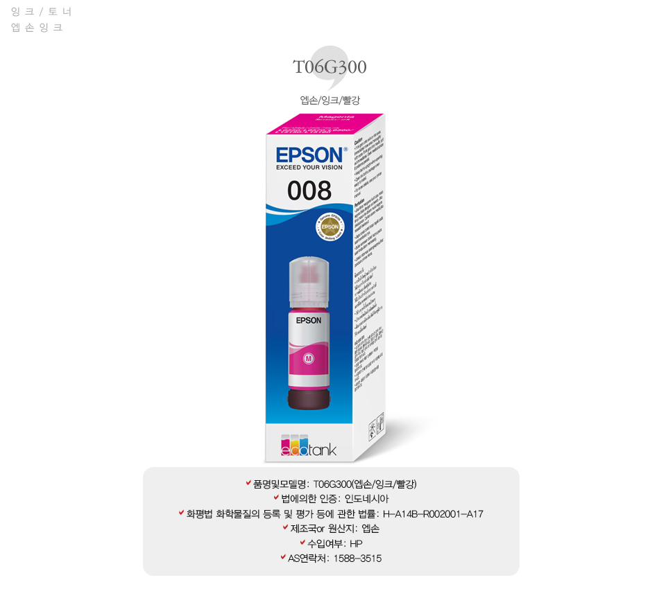 [업체별도배송]T06G300(엡손/잉크/빨강)/개