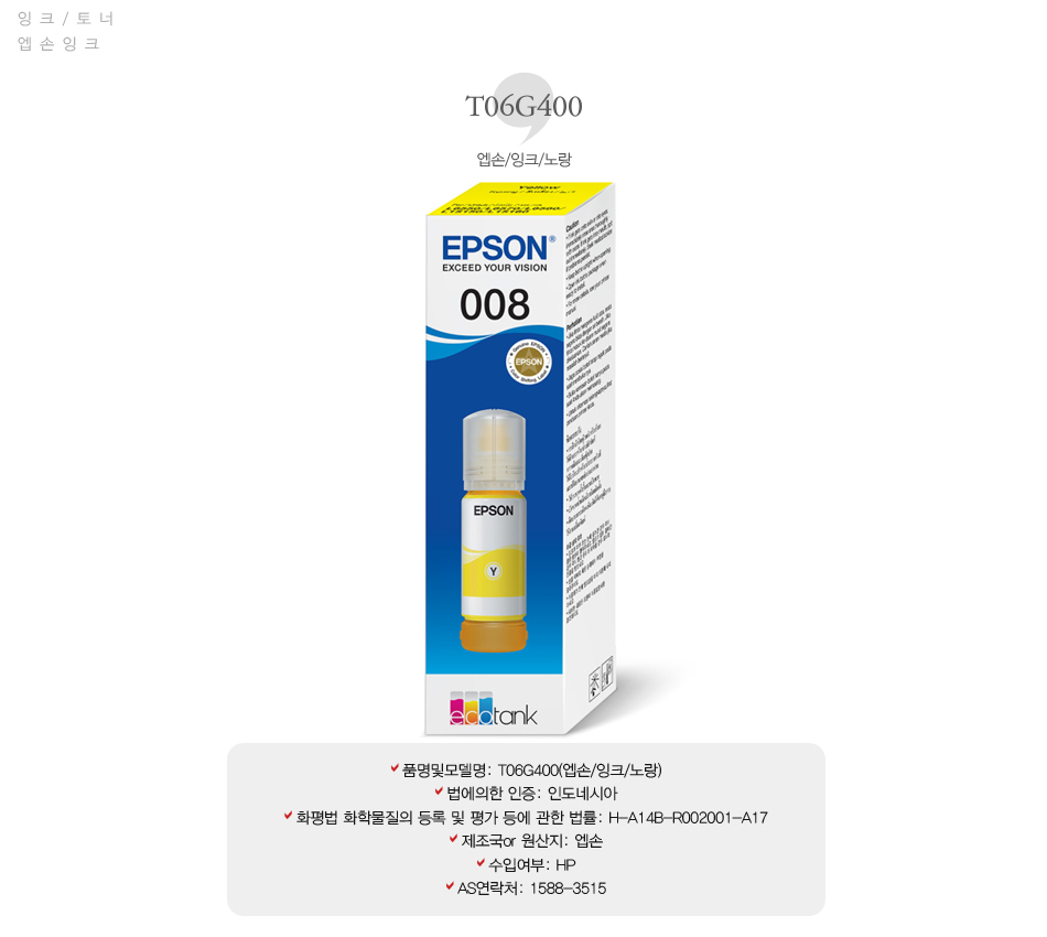 [업체별도배송]T06G400(엡손/잉크/노랑)/개
