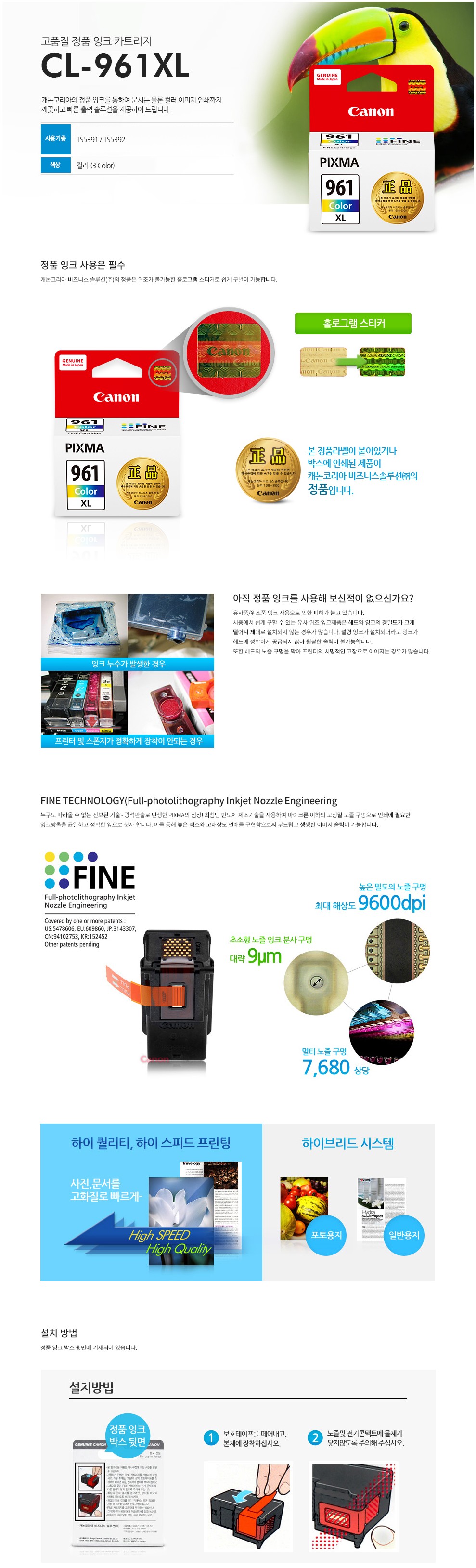 [업체별도배송]CL-961XL(캐논/잉크/컬러)/개