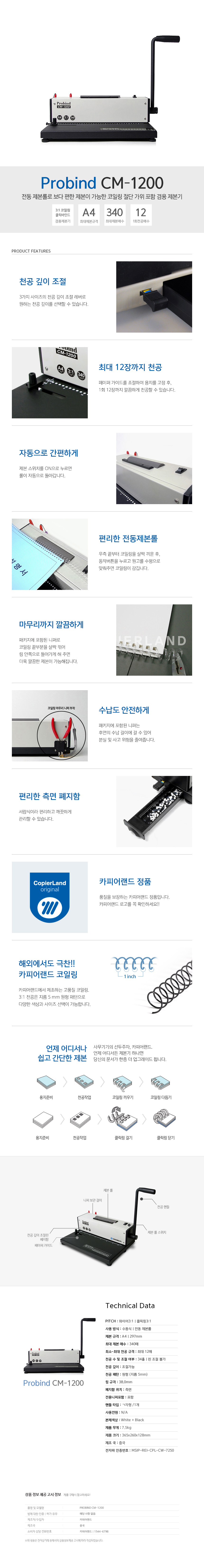 [업체별도배송]코일링제본기(Probind CM-1200/카피어랜드)/개