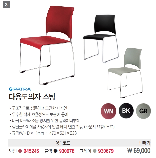 [업체별도배송]파트라 스팅 회의용의자(C3223/블랙BK)/개