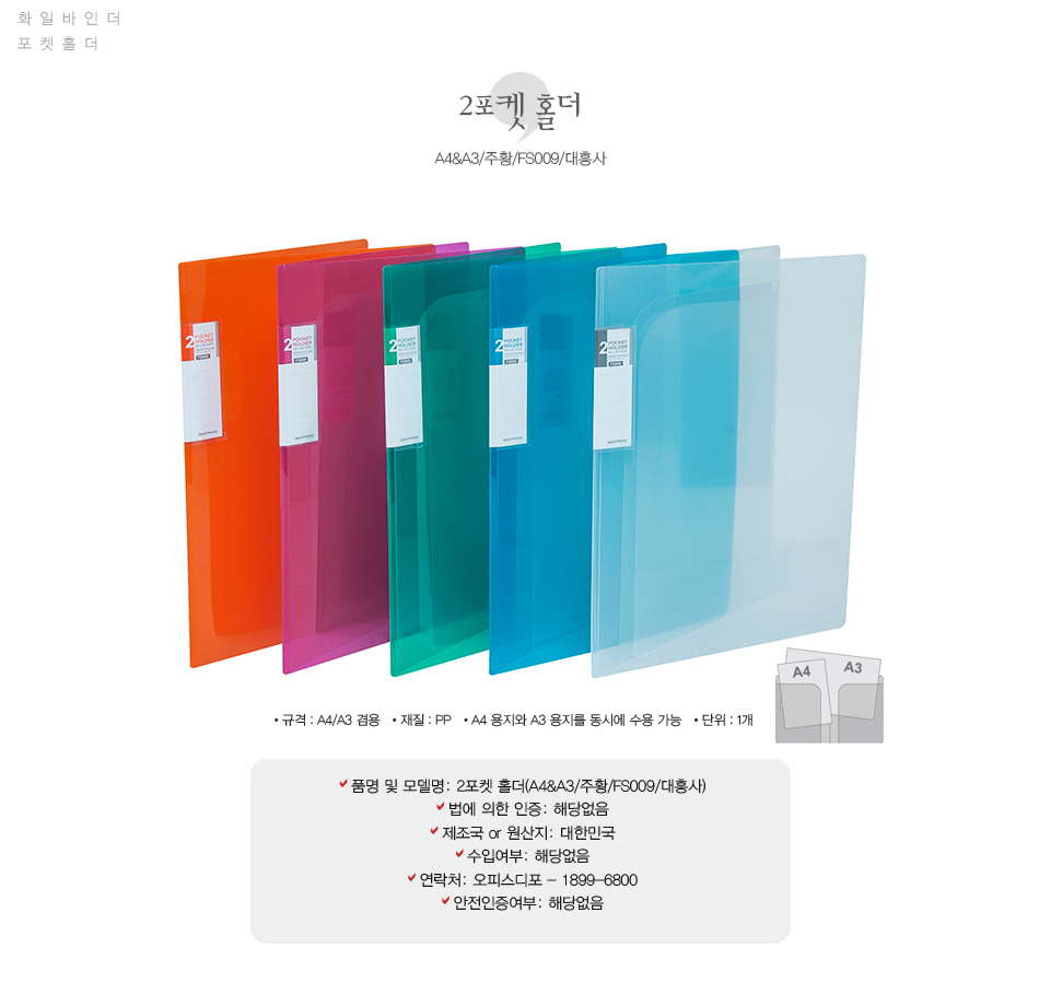 2포켓 홀더(A4&A3/주황/FS009/대흥사)/개