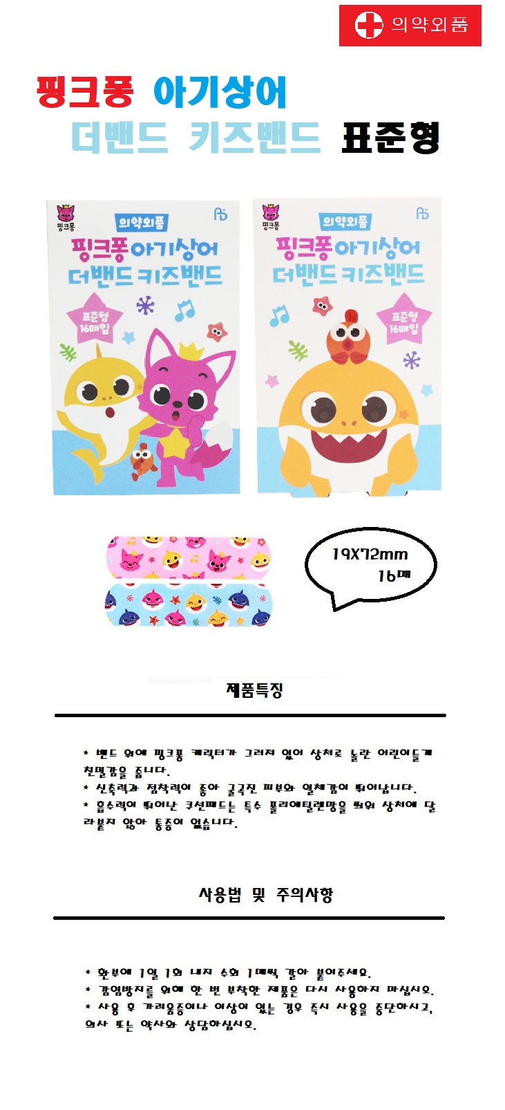 핑크퐁 패턴밴드 16매입 표준형/개