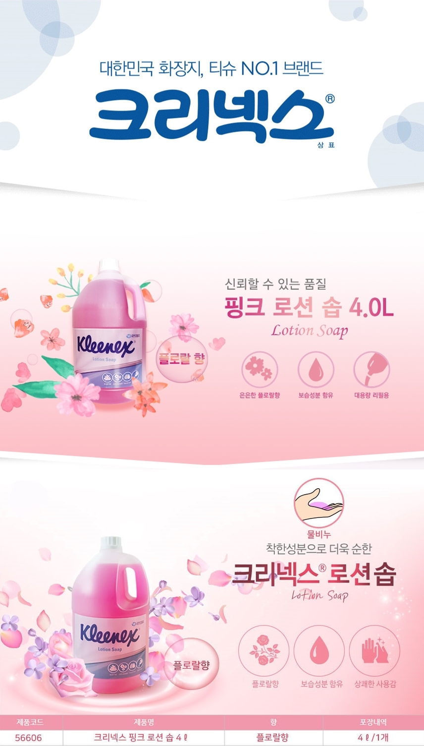 [업체별도배송]크리넥스 핑크로션 스킨클렌저 물비누 4L(56605/유한킴벌리)/개