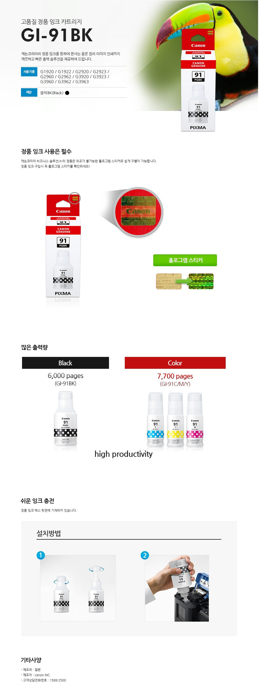 [업체별도배송]GI-91PGBK(캐논/잉크/검정)/개