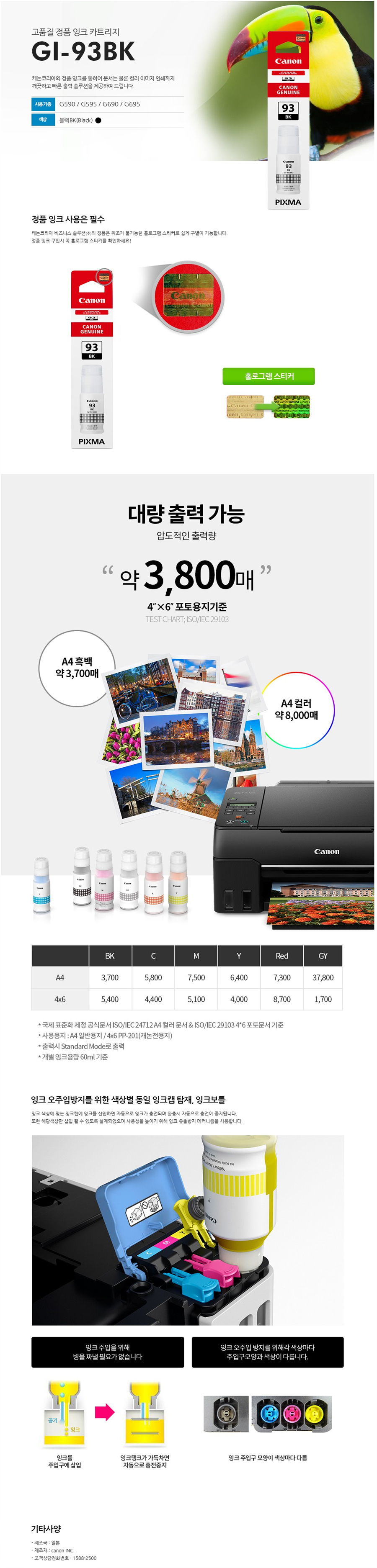 [업체별도배송]GI-93BK(캐논/잉크/검정)/개