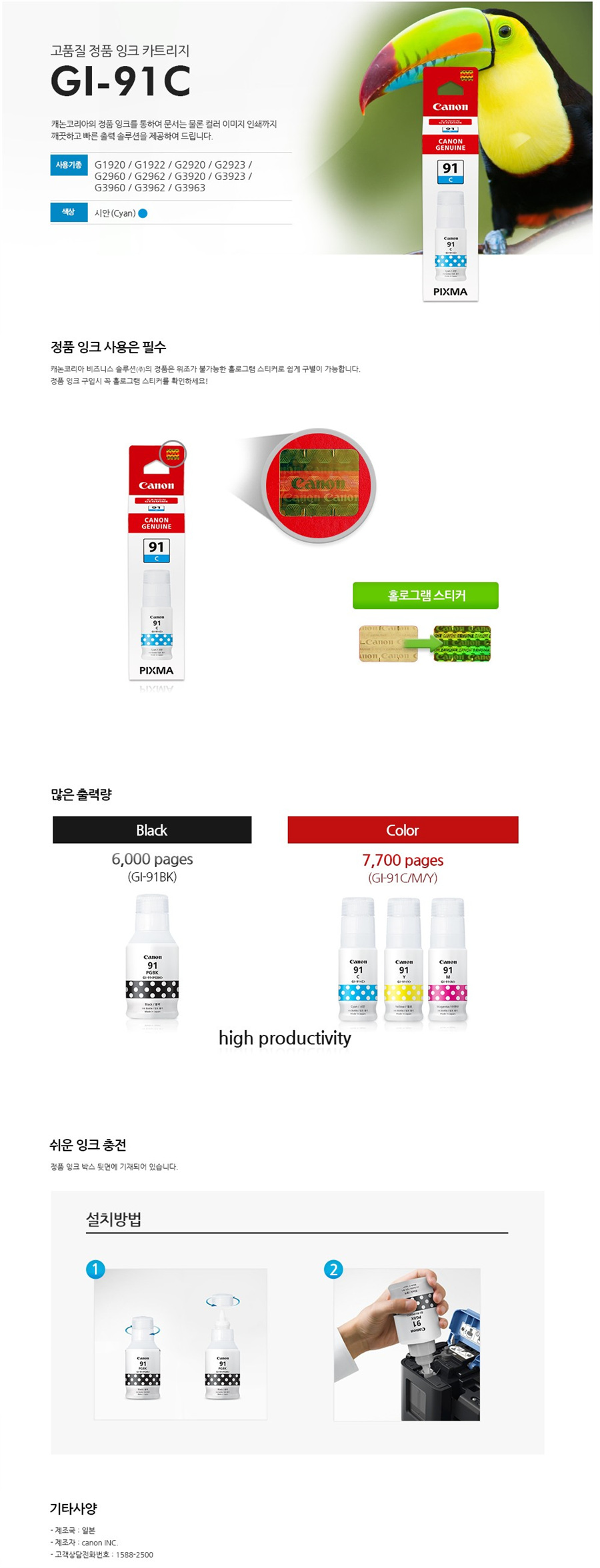 [업체별도배송]GI-91C(캐논/잉크/파랑)/개