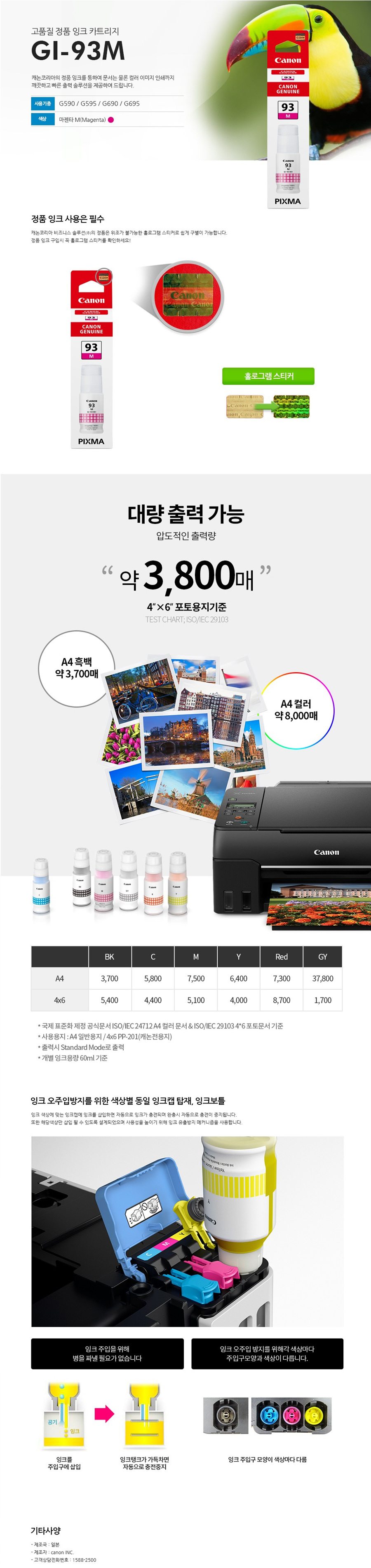[업체별도배송]GI-93M(캐논/잉크/빨강)/개
