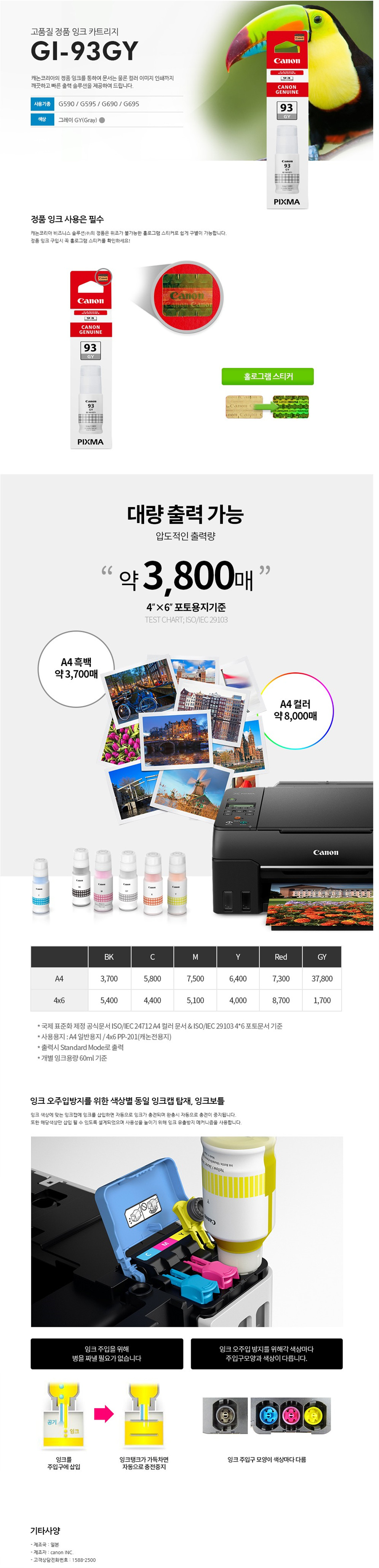 [업체별도배송]GI-93GY(캐논/잉크/그레이)/개