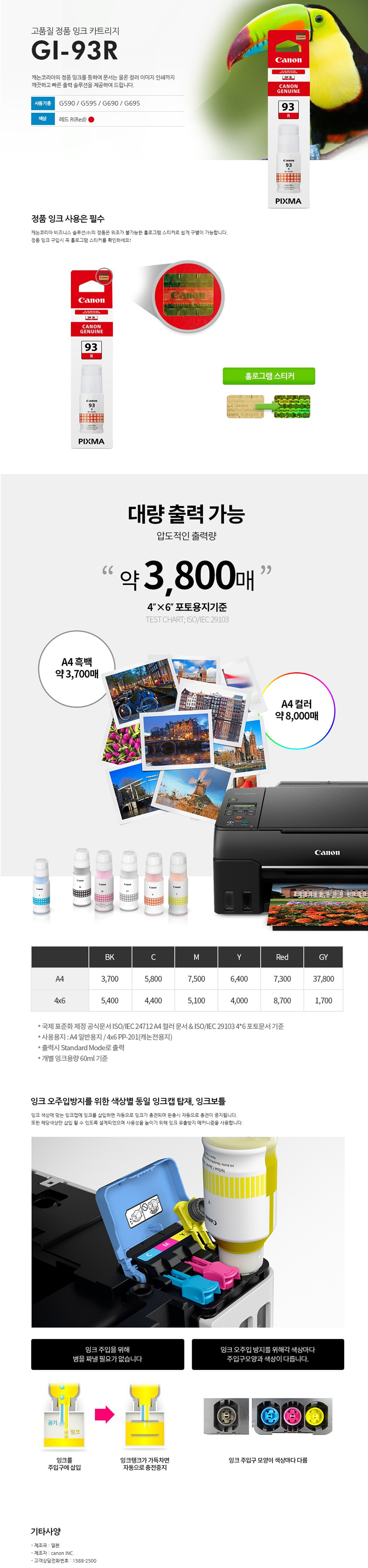 [업체별도배송]GI-93R(캐논/잉크/레드)/개