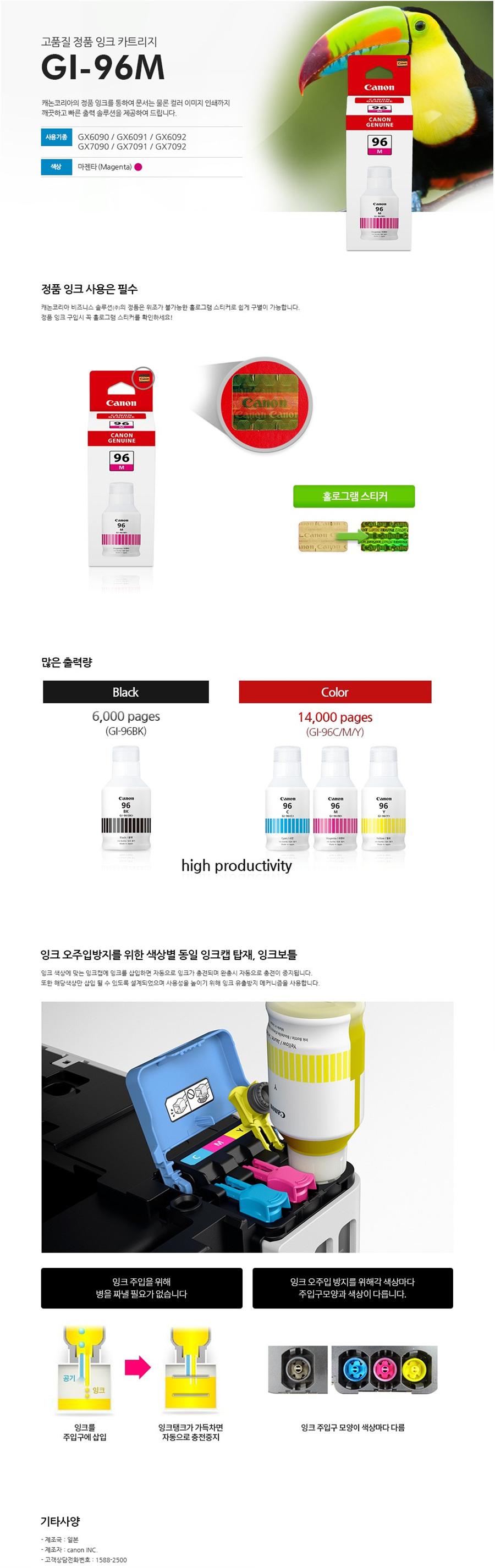 [업체별도배송]GI-96M(캐논/잉크/빨강)/개