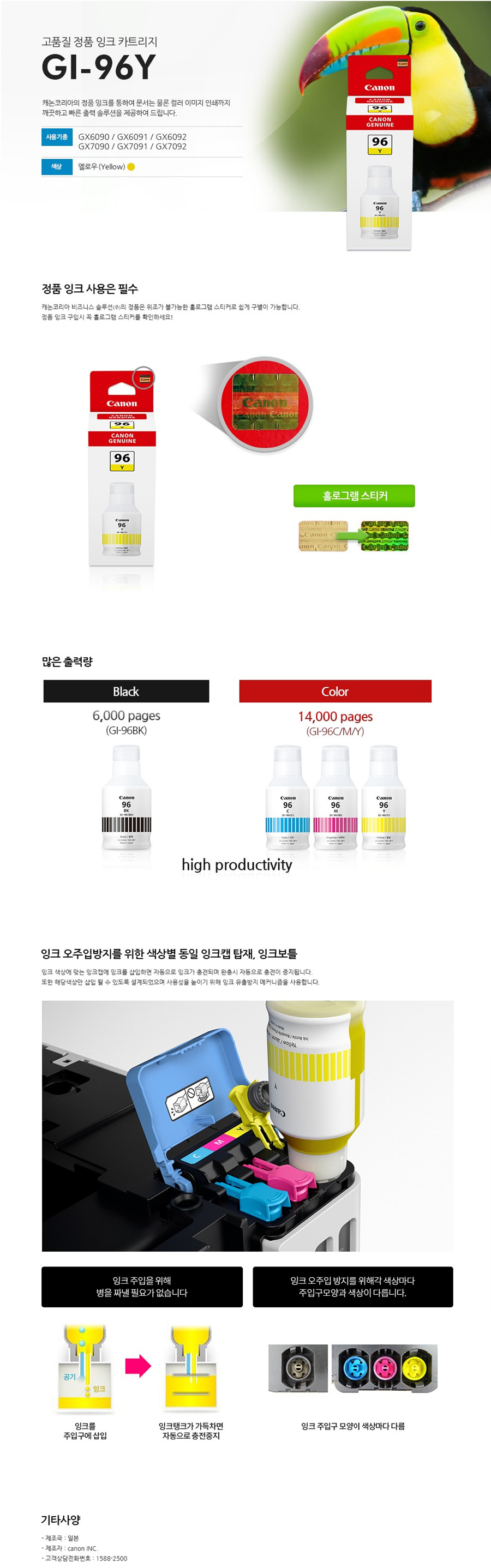 [업체별도배송]GI-96Y(캐논/잉크/노랑)/개