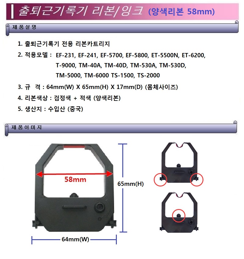 ■ 품명 및 모델명 : 출퇴근기록기카트리지(ET-5500N)