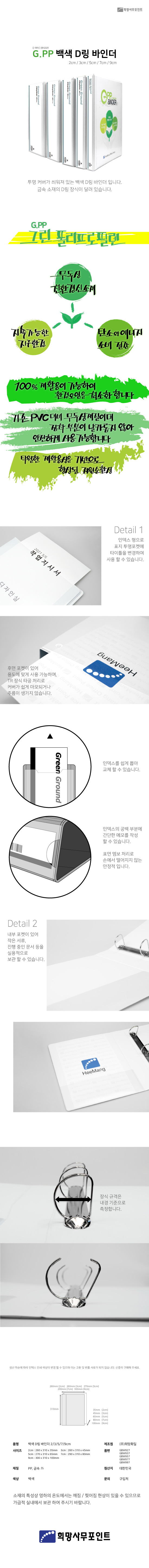 ■ 품명 및 모델명 : 친환경 G.PP D링 바인더(9cm/백색/GBW997/희망화일)