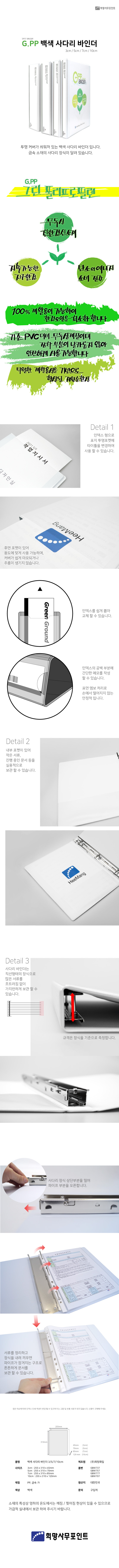■ 품명 및 모델명 : 친환경 G.PP 사다리 바인더(7cm/백색/GBW777/희망화일)