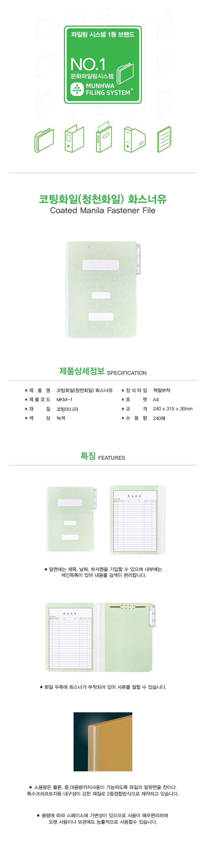 ■ 품명 및 모델명 : 청천화일(화스너포함/5개팩/MKM-1/문화산업)