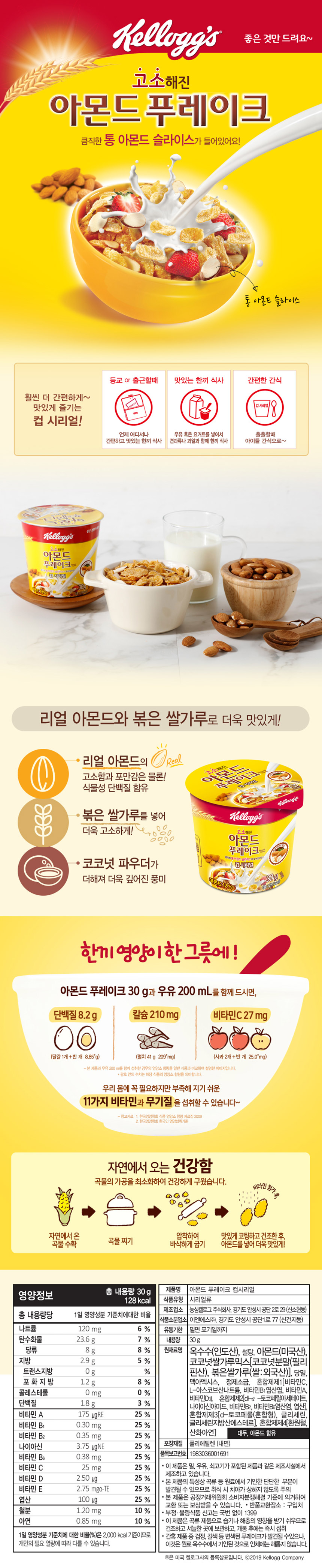 ■ 품명 및 모델명 : 아몬드 푸레이크 컵 시리얼(30gx12개/켈로그)