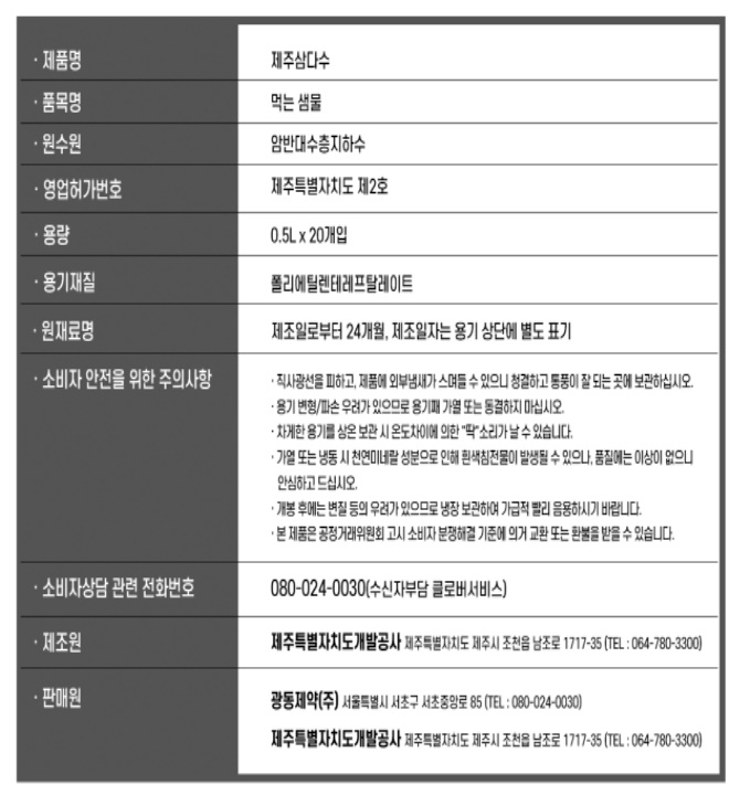 ■ 품명 및 모델명 : 제주 삼다수 무라벨(500ml*20개/광동제약)