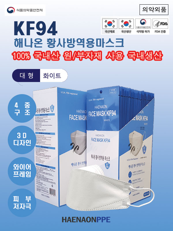 해나온 황사방역용 마스크(KF-94/대형/화이트/1개입)/개