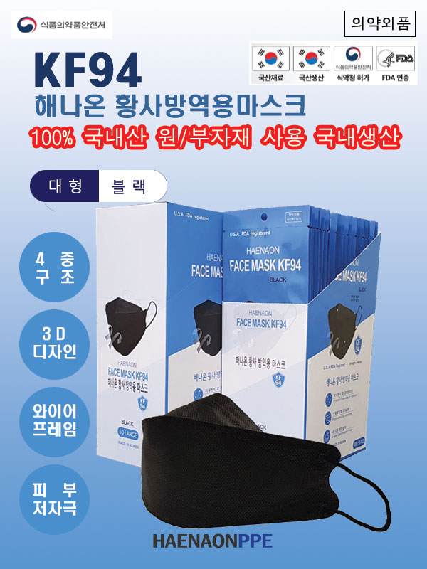 해나온 황사방역용 마스크(KF-94/대형/블랙/1개입)/개