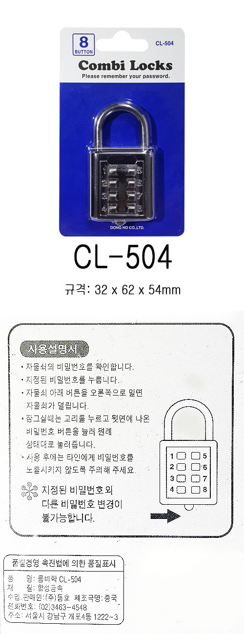 ■ 품명 및 모델명 : 콤비락 번호 자물쇠(CL-504)