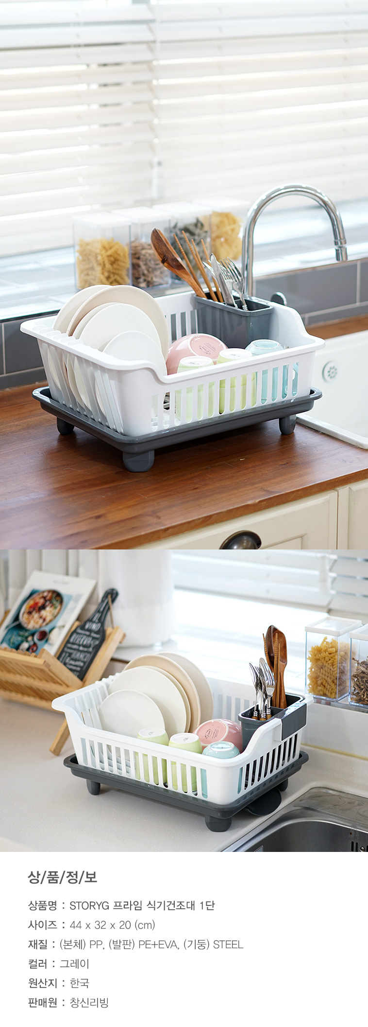 [업체별도배송]프라임 식기건조대(그레이/1단/창신리빙)/개