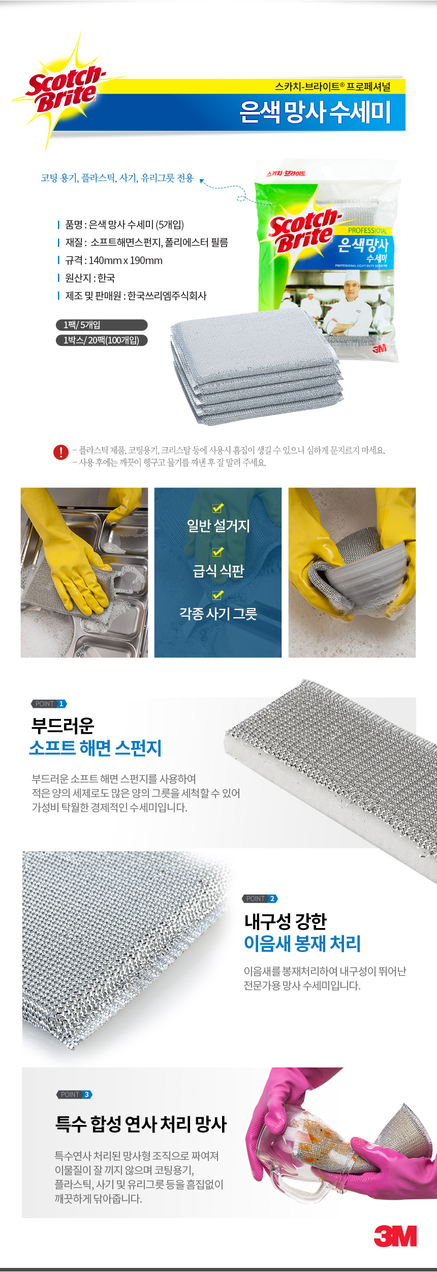 ■ 품명및 모델명 : 은색 망사 수세미(5입/NET-5/3M)