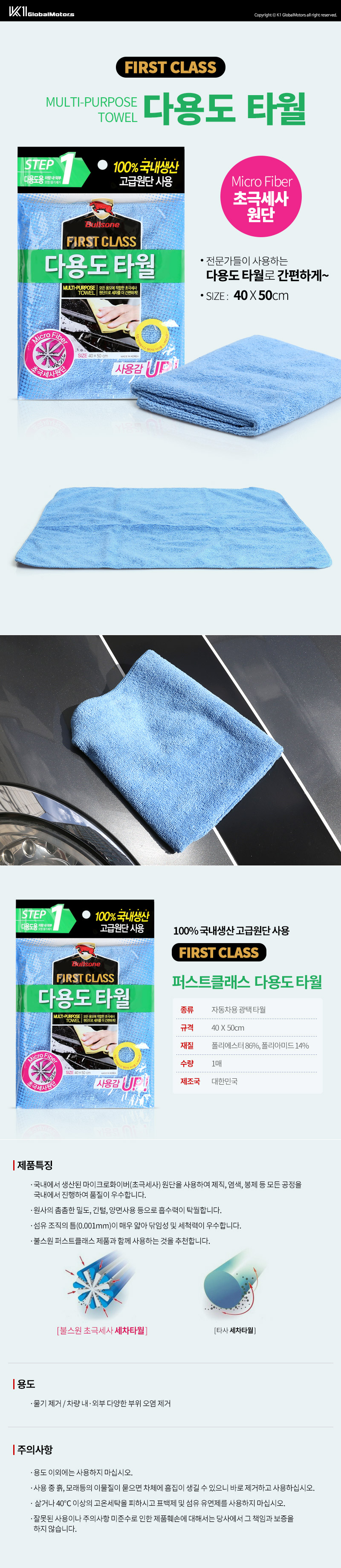 ■ 품명 및 모델명 : 퍼스트클래스 다용도 타월(1개입/불스원)