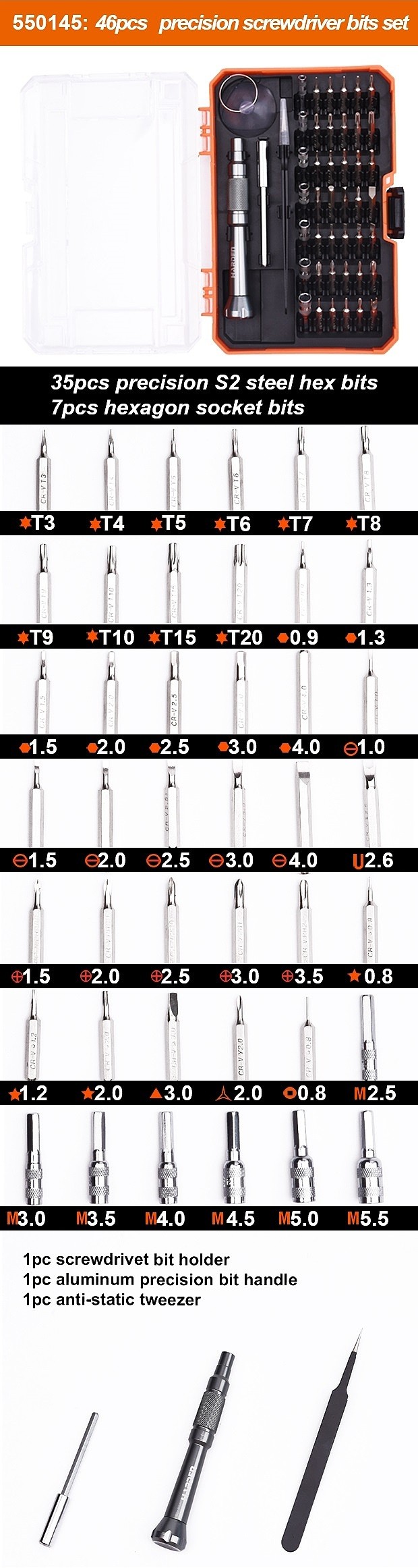 ■ 품명 및 모델명 : 정밀 드라이버 세트(46Pcs/550145/나비엠알오)