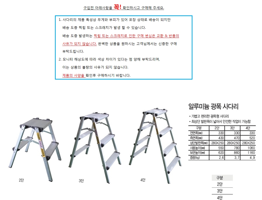 ■ 품명 및 모델명 : 알루미늄 광폭 사다리 2단