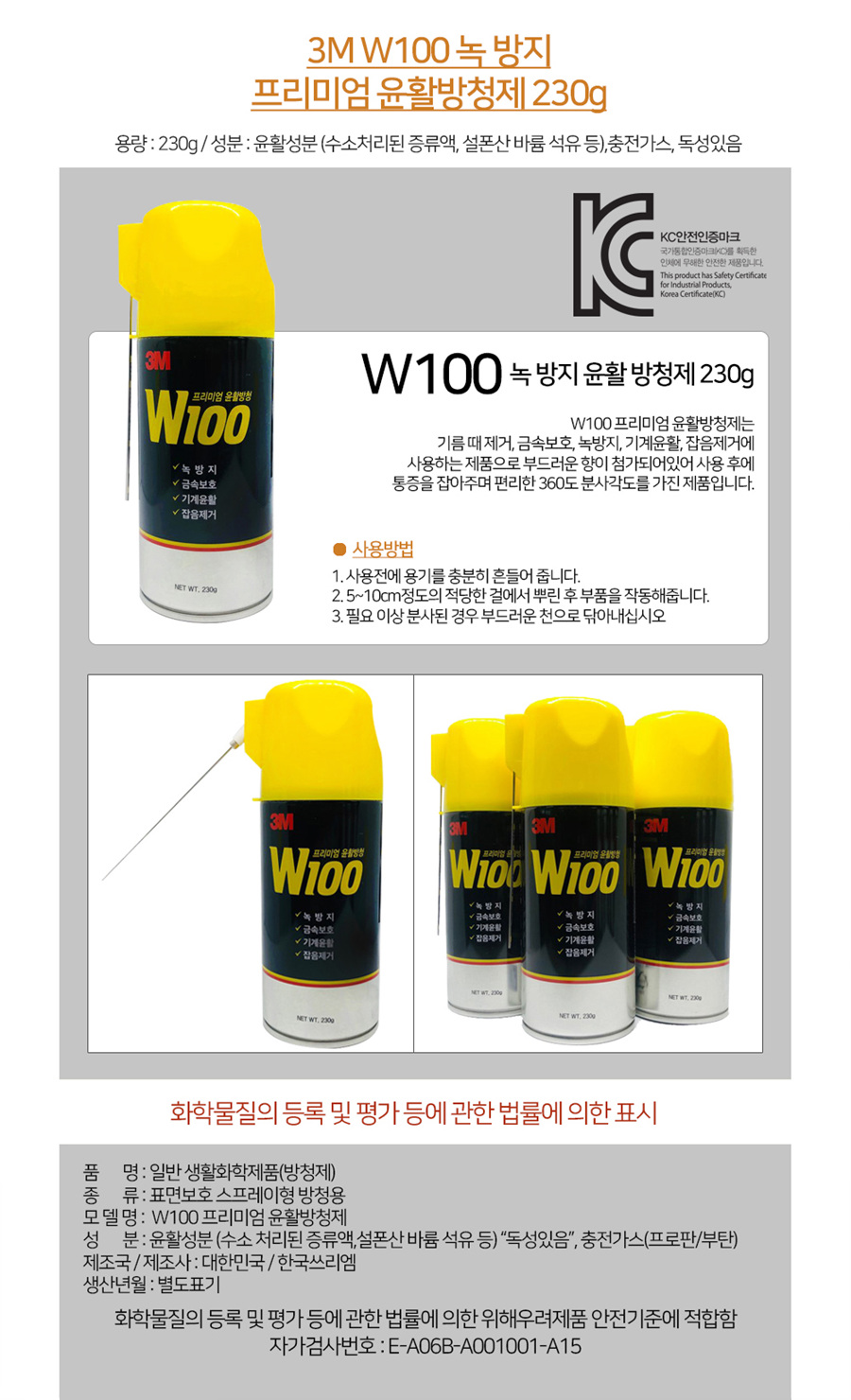 ■ 품명 및 모델명 : 프리미엄 윤활방청제(W100/230g/3M)