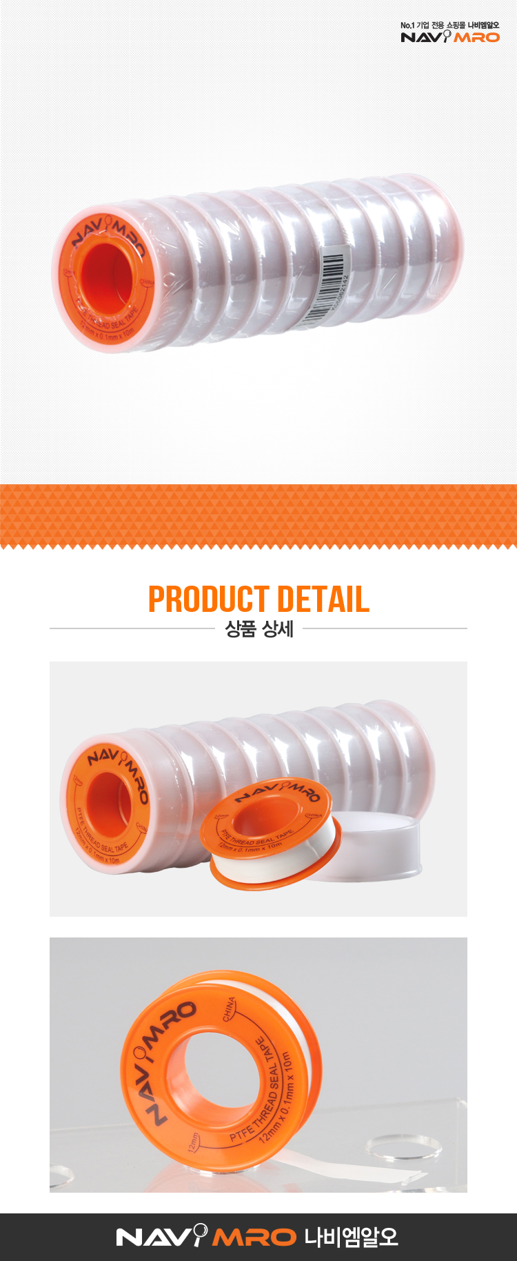 ■ 품명 및 모델명 : 테프론 테이프(백색/0.1mm*12mm*10M/100개입/고급형/나비엠알오)