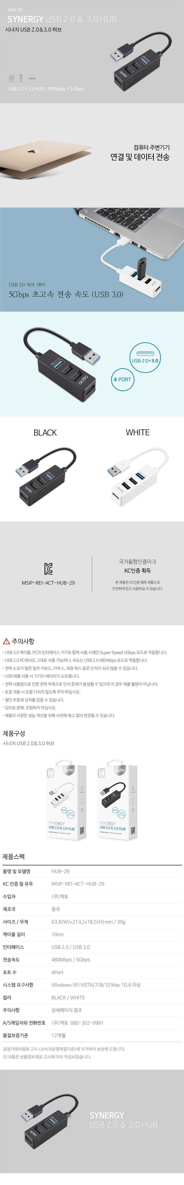시너지 USB 2.0 & 3.0 허브(HUB-29/블랙/엑토)/개