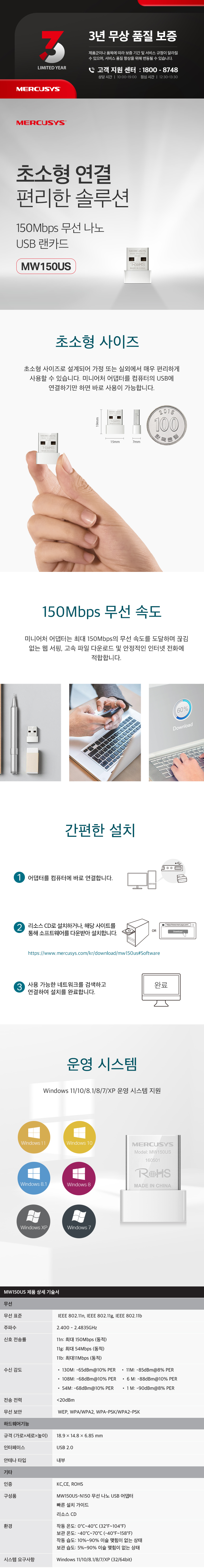 150Mbps 무선 나노 USB 랜카드(MW150US/머큐시스)/개