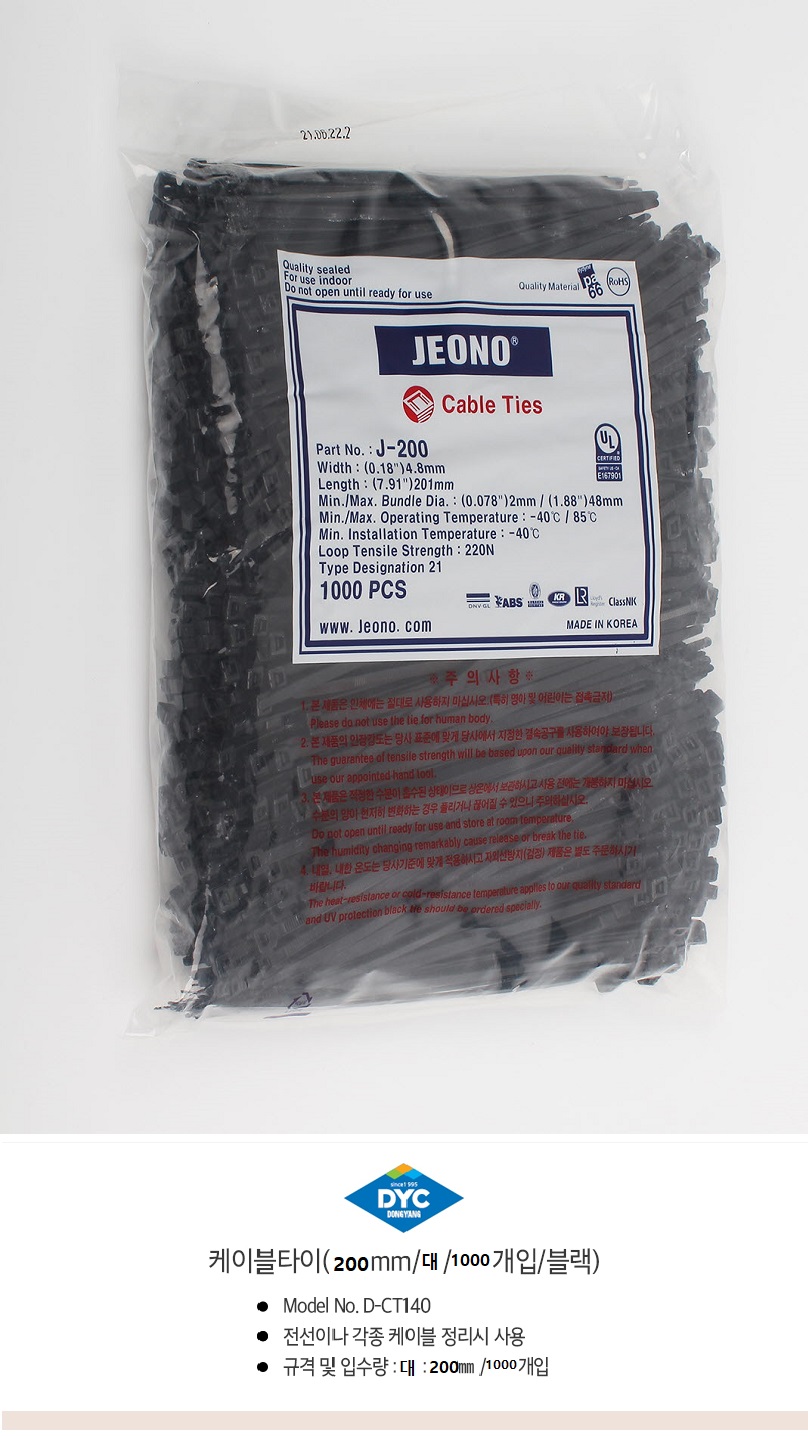 케이블타이(D-CT200-B/대/200mm/블랙/1000개)/개