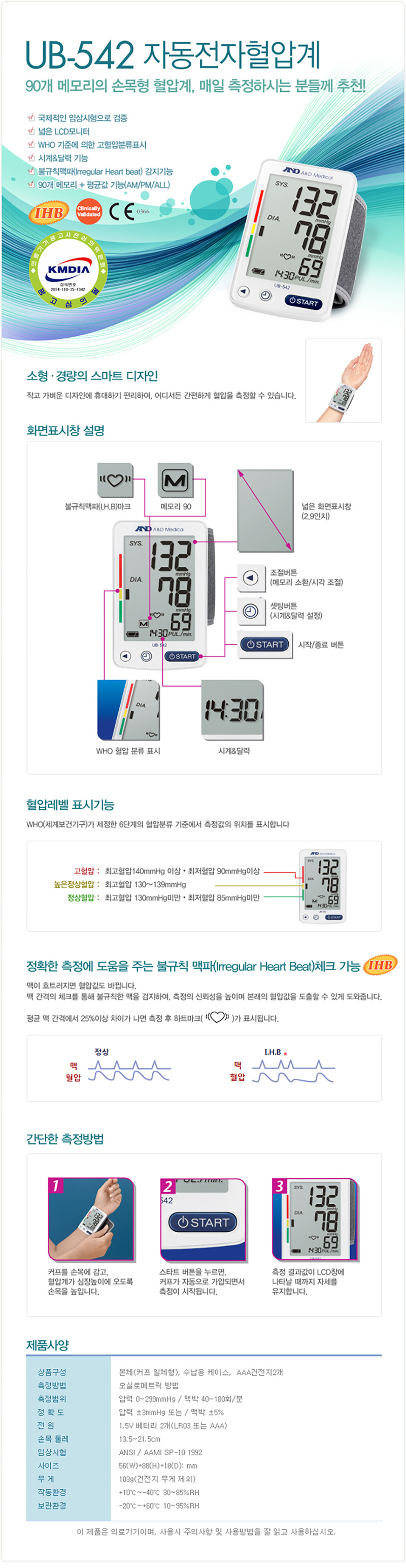 ■ 품명 및 모델명 : [업체별도배송]자동 전자협압계(UB-542/손목형/보령에이엔디메디칼)