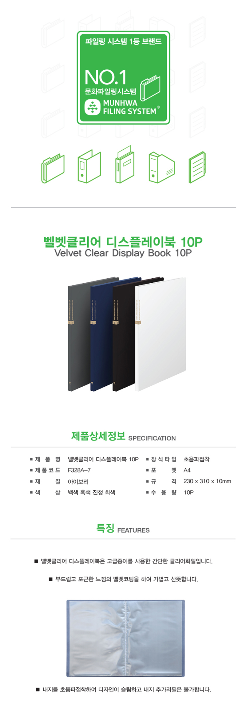 ■ 품명 및 모델명 : 문화 벨벳 디스플레이북(A4/10매/백색/F328A-71/문화산업)