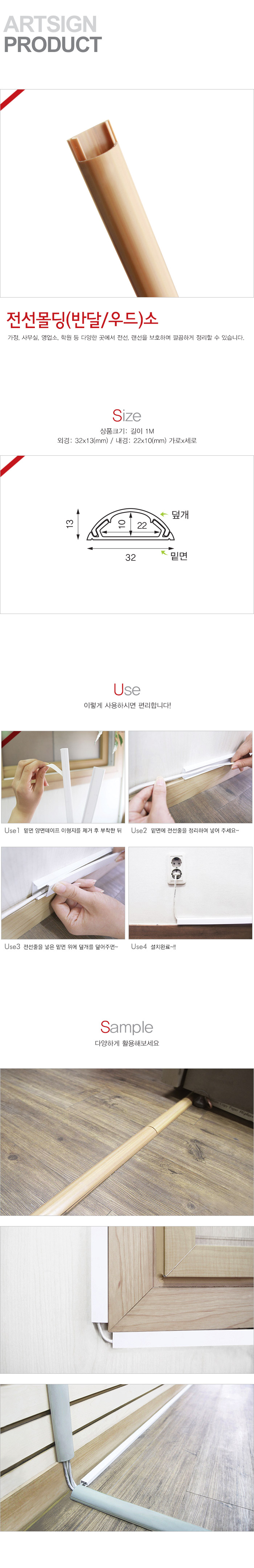 [업체별도배송]전선몰딩(2개입/반달/우드)소/5740/아트사인)/개