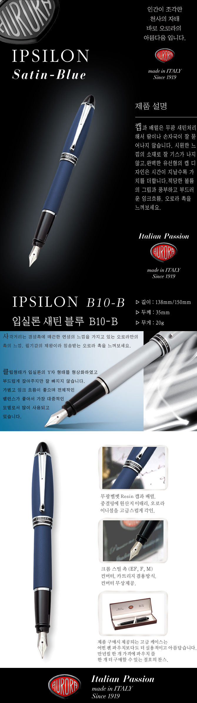 입실론 만년필 사틴 EF(청/B10-B/AURORA)/자루