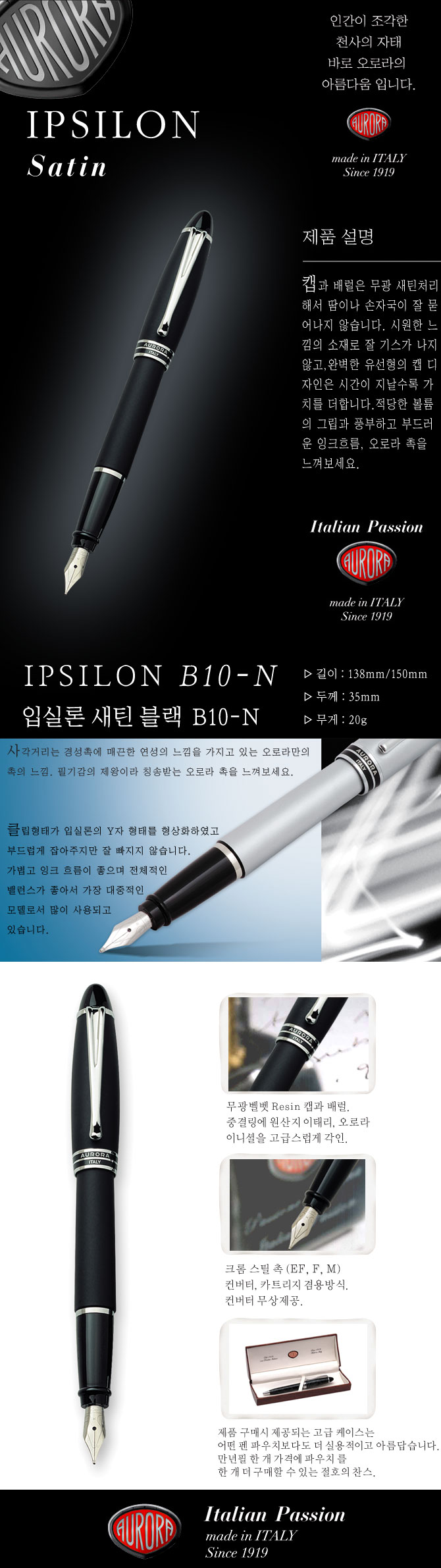■ 품명 및 모델명 : 오로라 입실론 만년필 사틴 흑