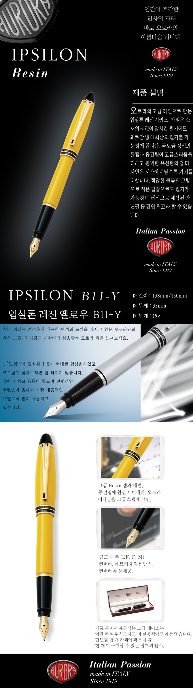 [업체별도배송]입실론 볼펜 레진 옐로우(필기심:청색/B31-YP/AURORA)/자루