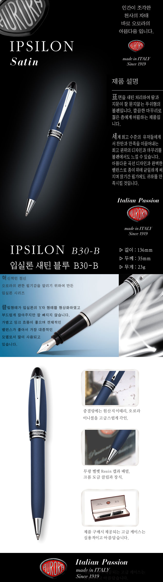 [업체별도배송]입실론 볼펜 사틴 청(필기심:청색/B30-BP/AURORA)/자루