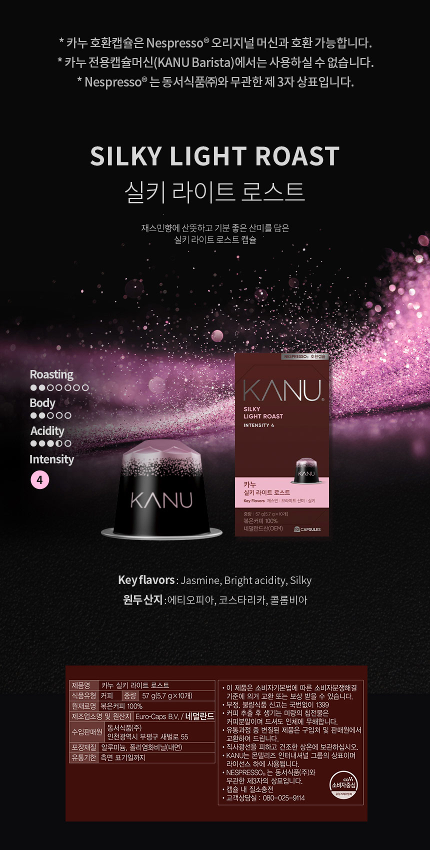 카누 네스프레소 호환캡슐 실키 라이트 로스트(5.7g/10개)/개