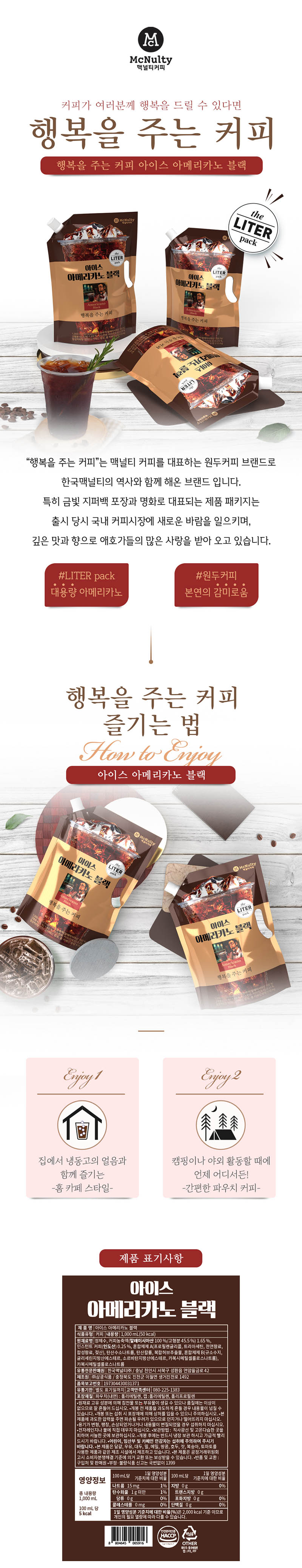 ■ 품명 및 모델명 : 행복을주는 커피 아이스 아메리카노 블랙(1L/한국맥널티)?