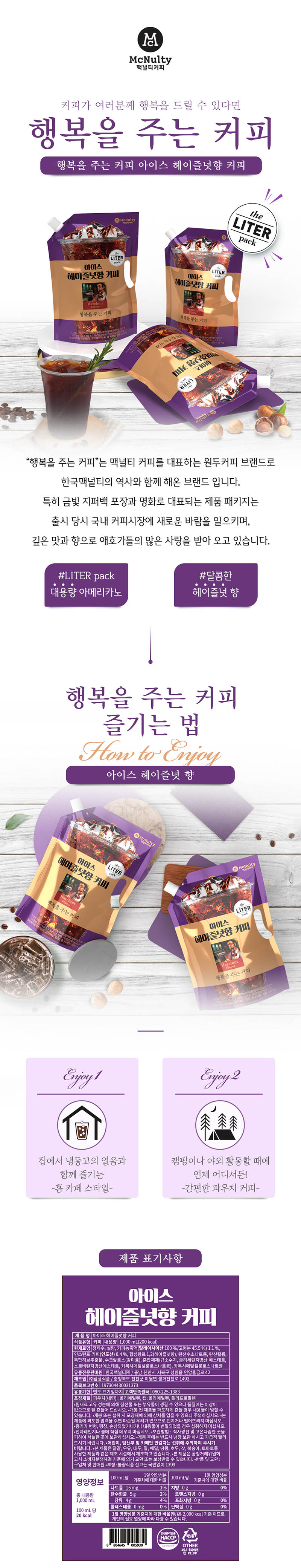 ■ 품명 및 모델명 : 행복을주는 커피 아이스 헤이즐넛향(1L/한국맥널티)?